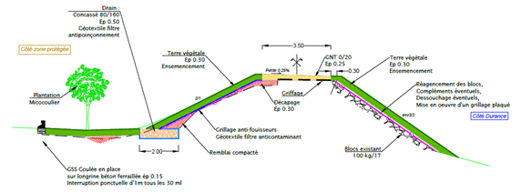 Des interventions plus ponctuelles consisteront à améliorer les équipements de la digue : clapets anti-retours, escaliers de visite, caméras de surveillance des crues. A l’issue de ces travaux, la digue sera accessible aux seuls piétons et cyclistes qui pourront alors bénéficier confortablement d’une vue imprenable sur la Durance entre le rond-point du melon et la zone industrielle.